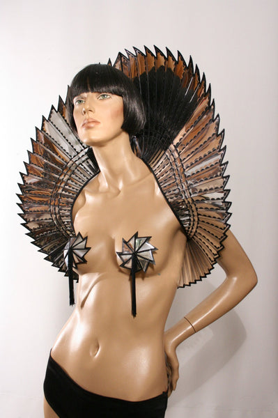 Look at the embroidered details, that is the original bolero with open back and high collar, steampunk sci fi vest armor bolero veste, fetish stolen, steampunk shrug lady gaga burlesque Egyptian goddess