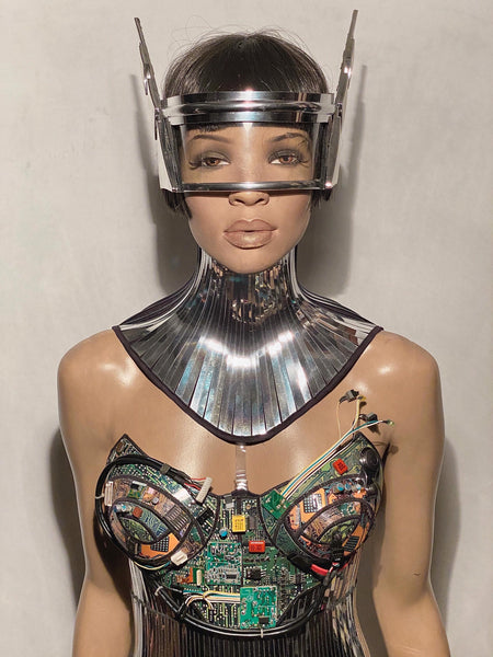 This cyberpunk corset/bra top is my ultimate handmade creation, made with real computer circuits and components. Great eye-catcher at any rave festival, burning man, cosplay character!