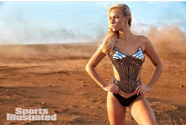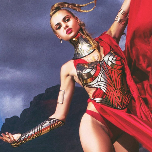 The different pieces of this futuristic top are shaped and sewn by hand to form the bust plate.