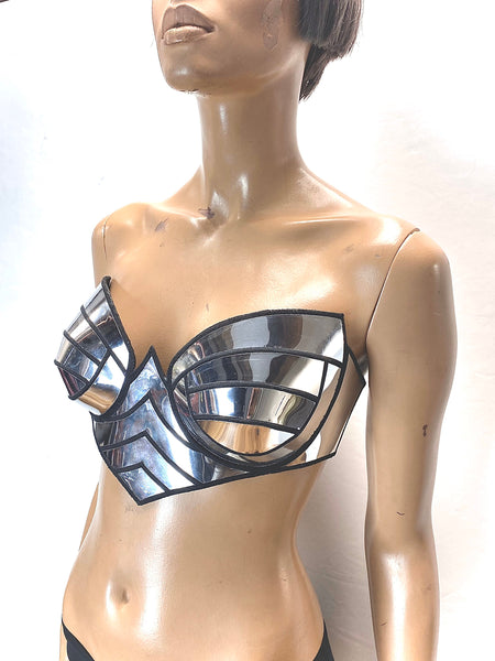Mirror Chrome Bustier Bra: Cyberpunk Rave Top