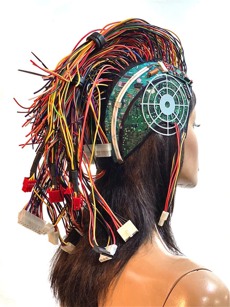 Computer love Mohawk helmet , droid headpiece ,cyberpunk ,divamp couture, designer clothing