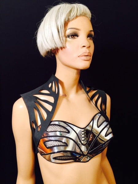 This corset/top or bra is my ultimate handmade creation, made for any festival purpose, great for Burning Man, Vegas Girls or even cybergoth or cyberpunk, fusion or rave you name it!!