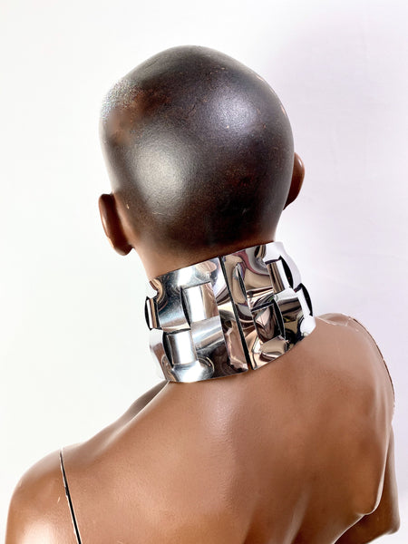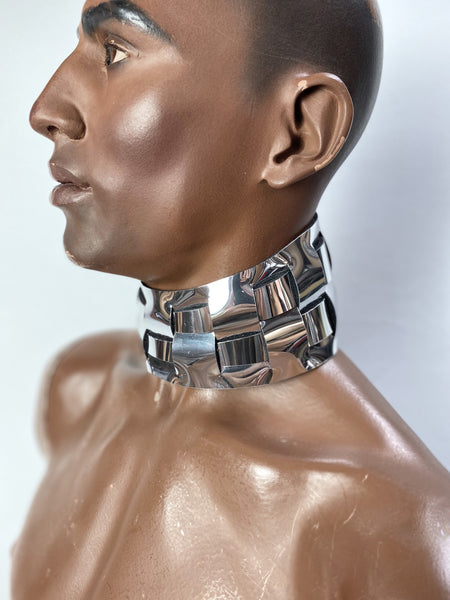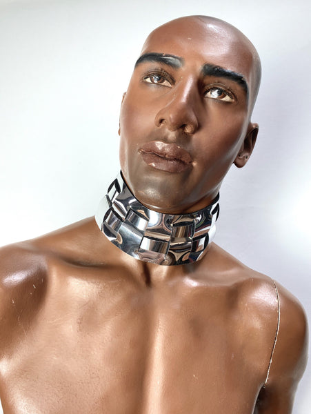 Thick collar for women and men, custom made to your neck circumference, in chrome or any other color.
