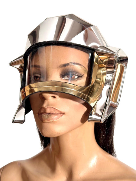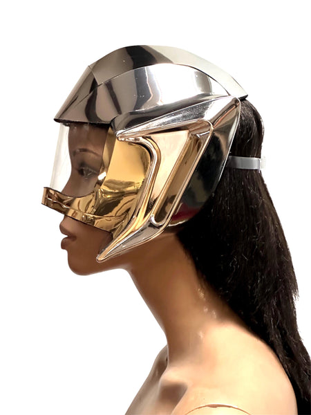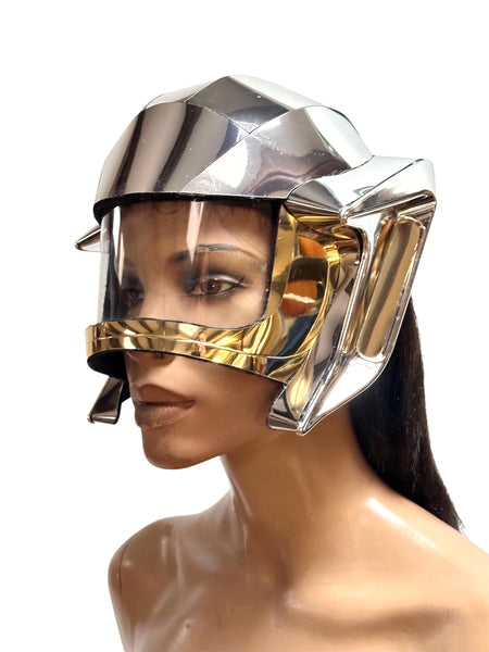 This lightweight futuristic helmet can be used for any scifi purpose fetish cyber headdress cybergoth or robocop halloween gladiator warrior helmet.