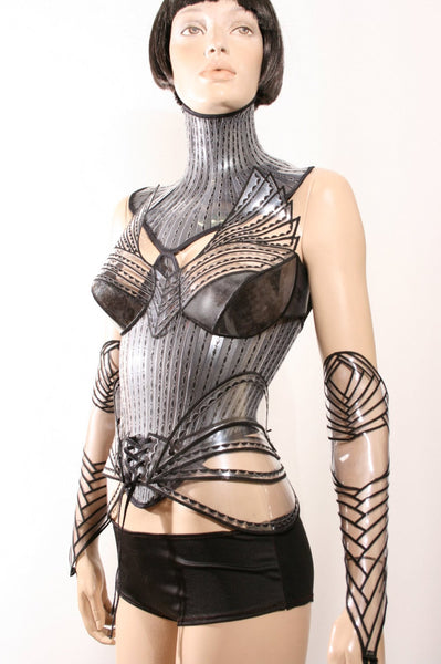 Completely flexible and perfectly adapts to each neck and schoulder.Clear dark gothic cyber victorian choker or necklace choker for steampunk fetish bdsm ,what ever purpose you feel happy with! neck corset