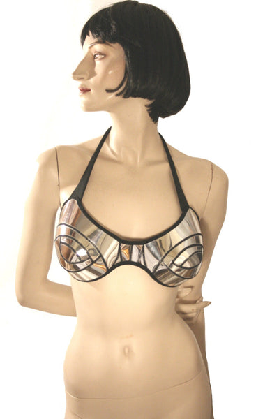metalen spiegel leidende bh. Avantgarde clubwear, cyber onderwereld, zichtbare kleding, sci fi, cyberpunk of buikdanser, clubwear, cyber, rave bh