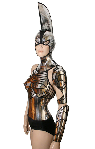 A pair of two piece combo cyborg cyberarm, futuristic spartan armor made by divamp couture